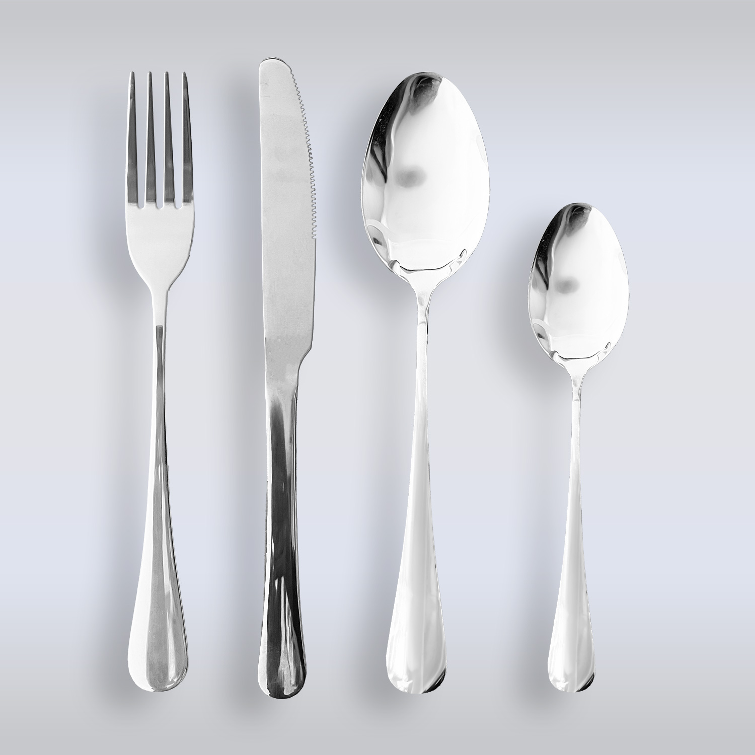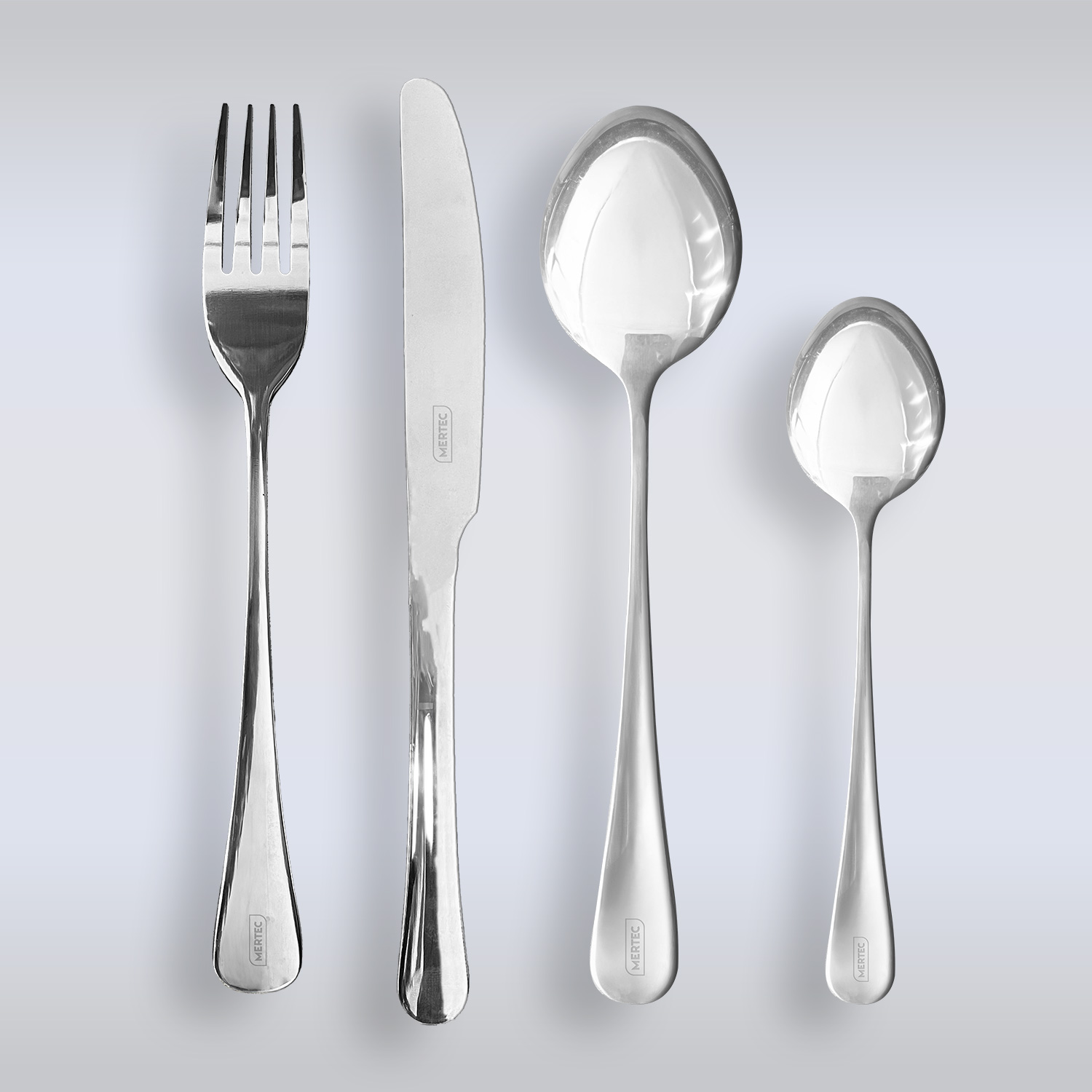 Juego de cubiertos MT-042S de 24 piezas fabricado en acero inoxidable de alta calidad. Diseño moderno, resistente y perfecto para cualquier ocasión.